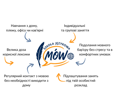 Місія школи MÓW - підтримувати кожного в швидкому засвоєнні польської мови, щоб щоденні ситуації перестали бути викликом, а стали природною частиною твого життя.
