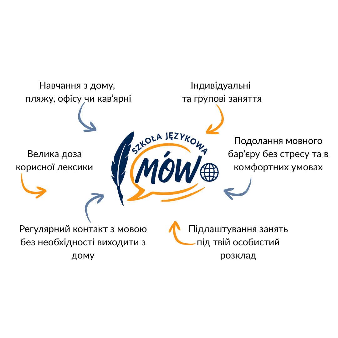 Місія школи MÓW - підтримувати кожного в швидкому засвоєнні польської мови, щоб щоденні ситуації перестали бути викликом, а стали природною частиною твого життя.